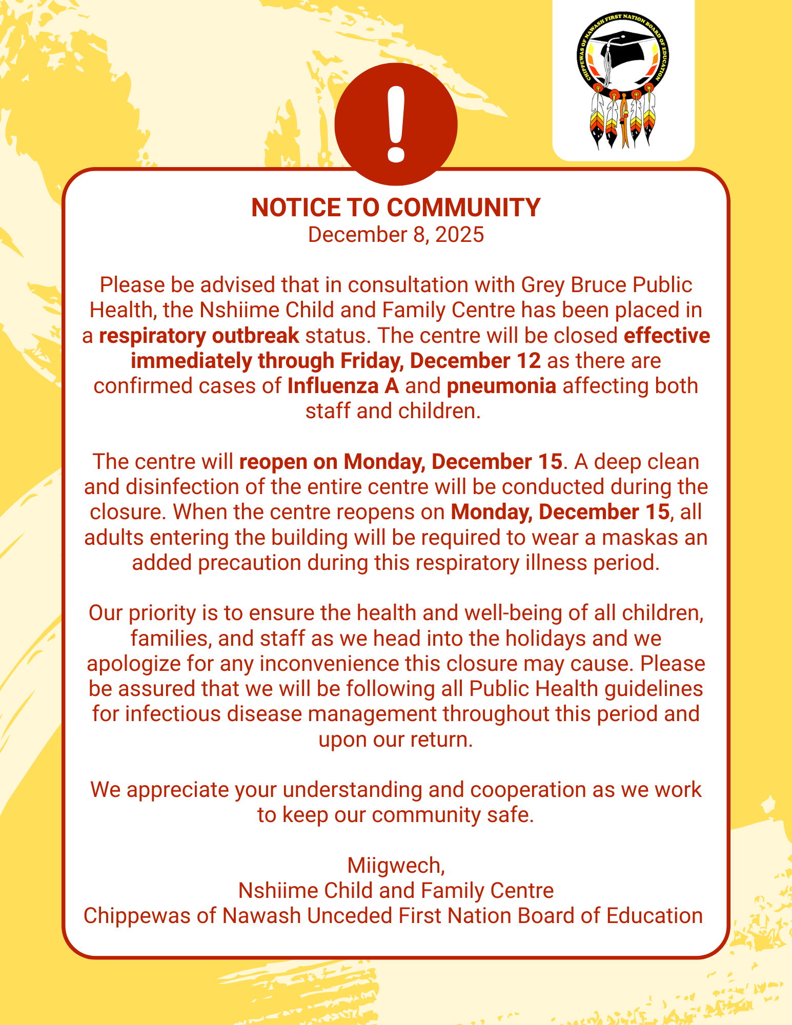 For communications and media inquires please reach out to our Communications Department at communications@nawash.ca.