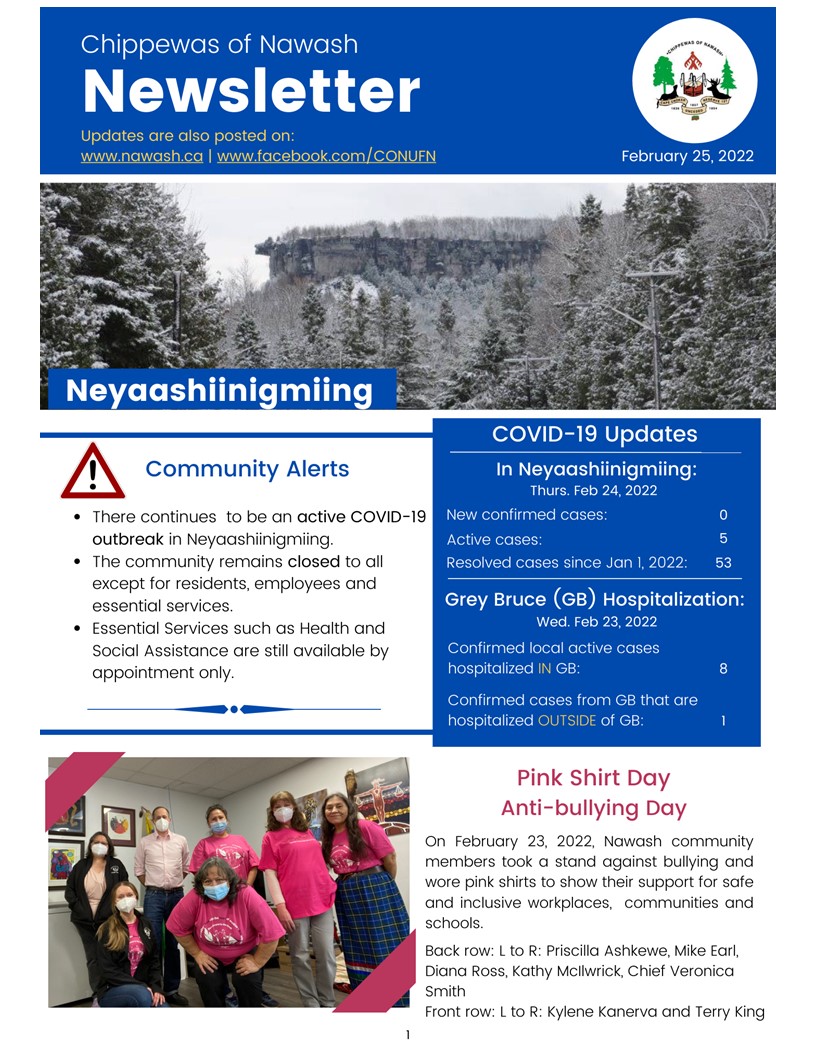 Feb. 25, 2022: Community & COVID-19 Updates for Neyaashiinigmiing