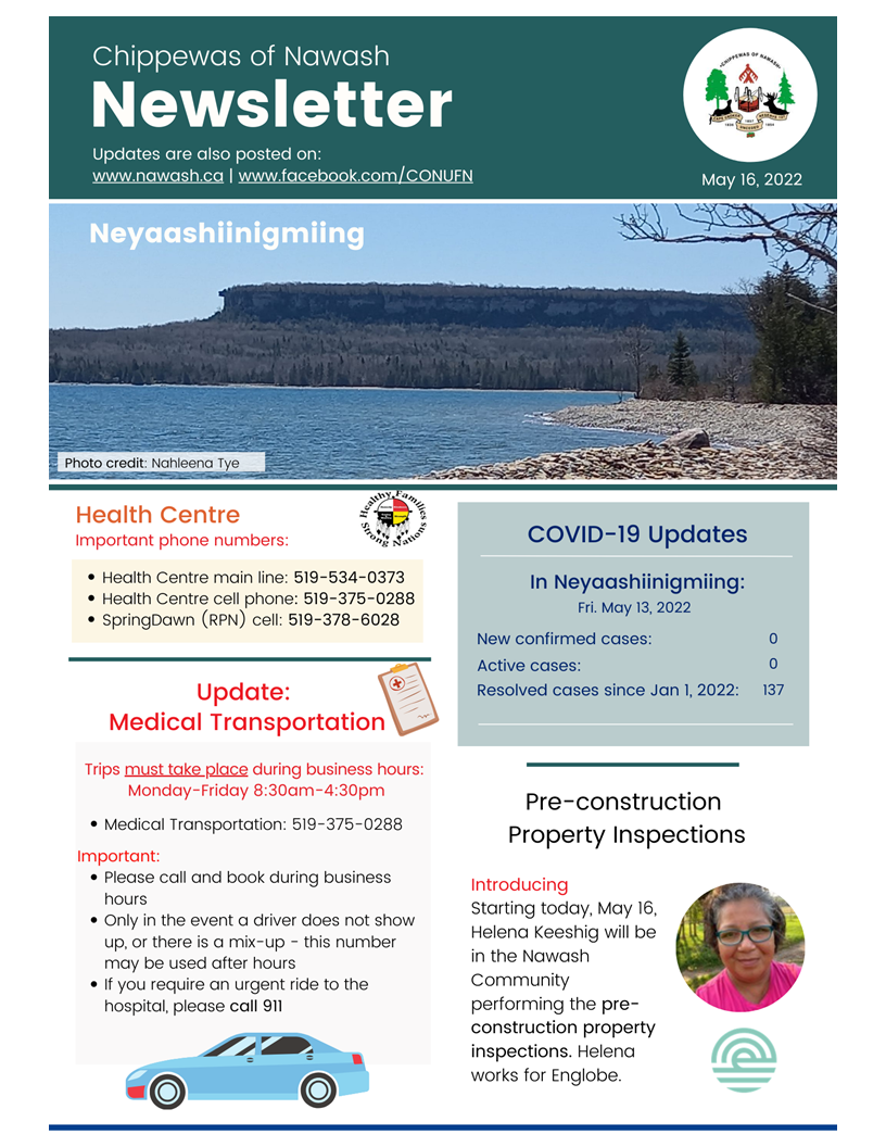 May 16, 2022 Newsletter: Community & COVID-19 Updates for Neyaashiinigmiing
