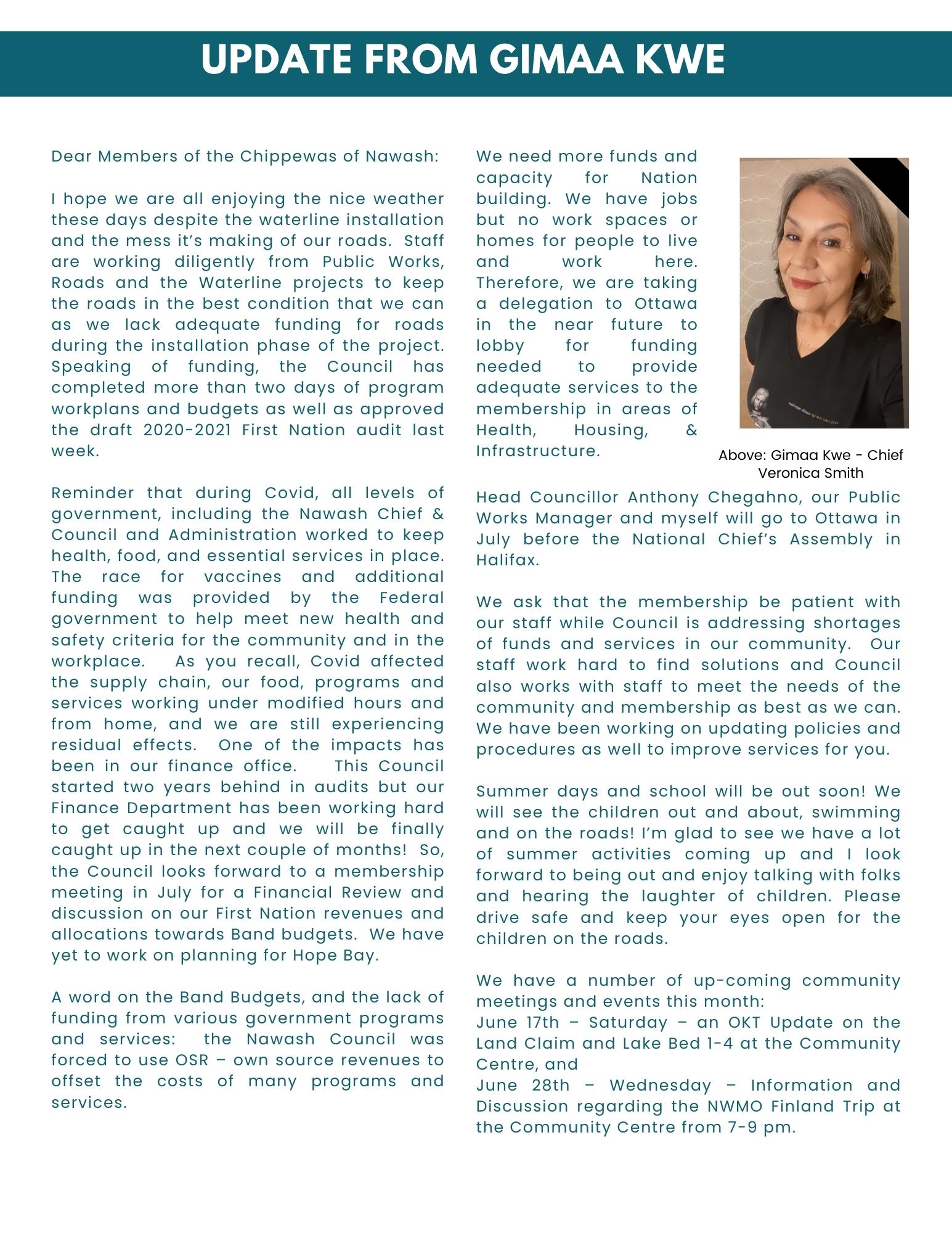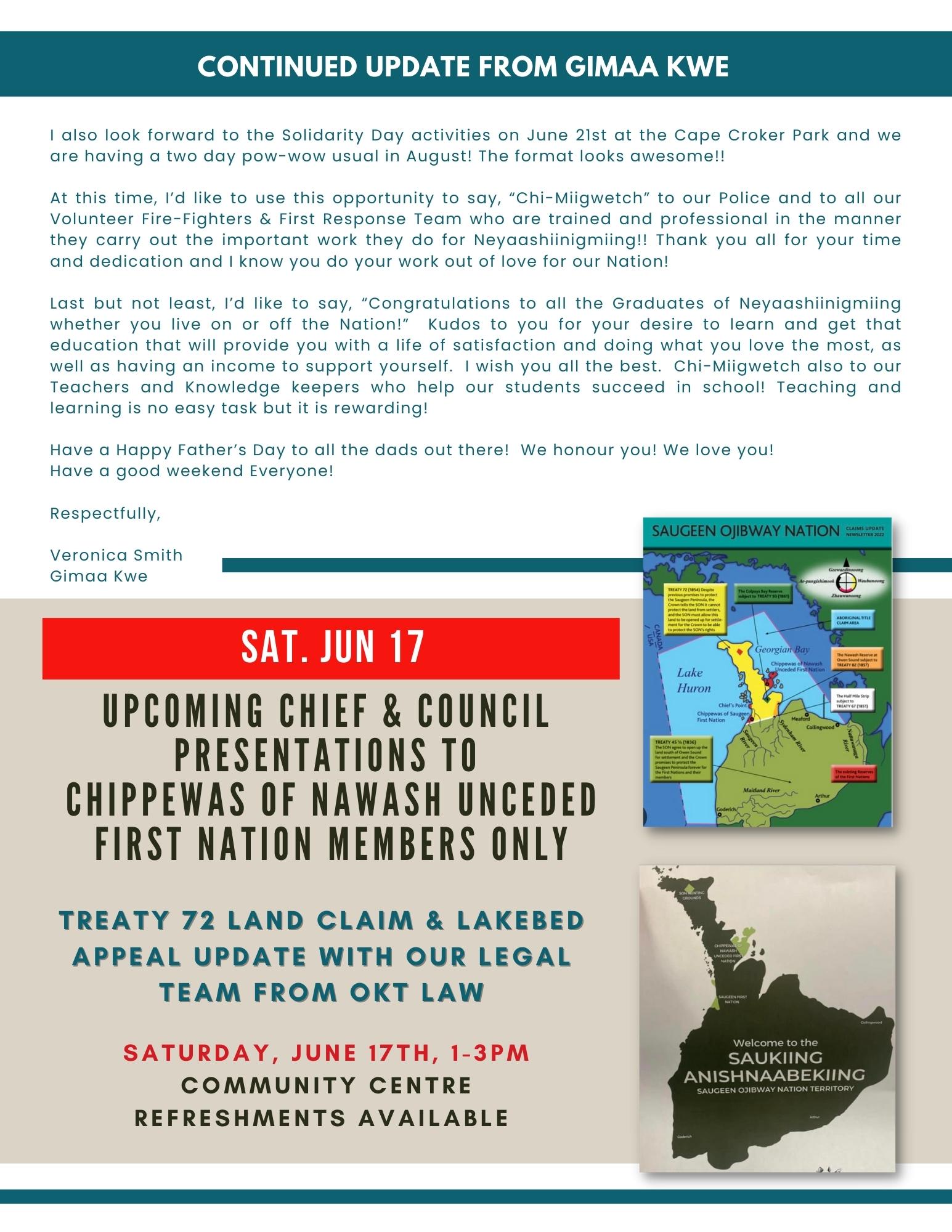 June 16, 2023: The Nawash Ezhiwebag – Community Updates for Neyaashiinigmiing