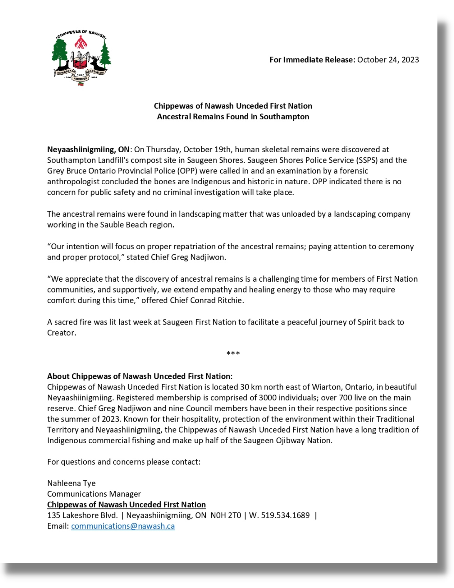 October 24, 2023: Press Release: Ancestral Remains Found in South Hampton Posted on October 24, 2023October 27, 2023 Posted in Post Archives.