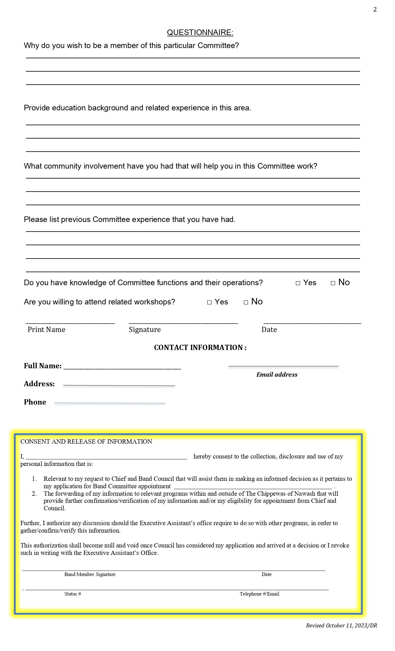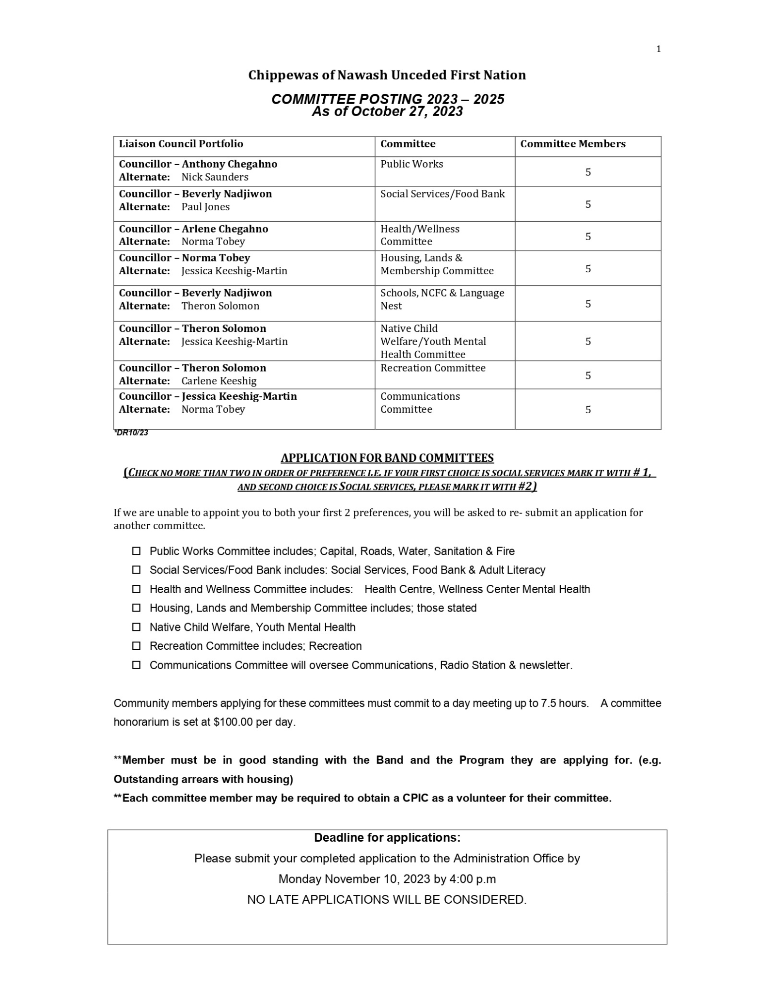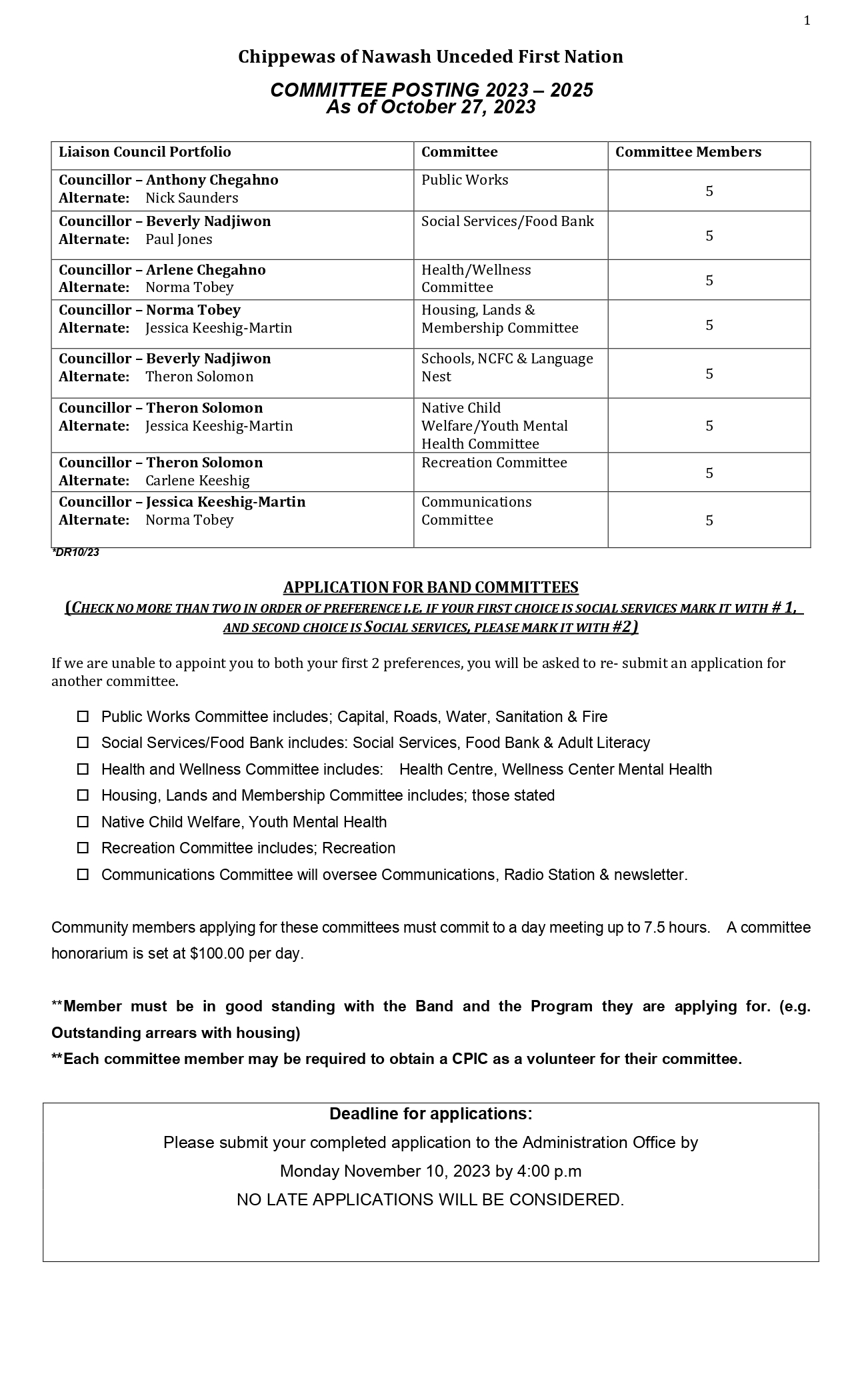 Deadline Nov. 10, 2023: Application for Band Committee Posted on October 26, 2023October 26, 2023 The Application for Band Committees are available here, in: Word format PDF format Posted in Post Archives.
