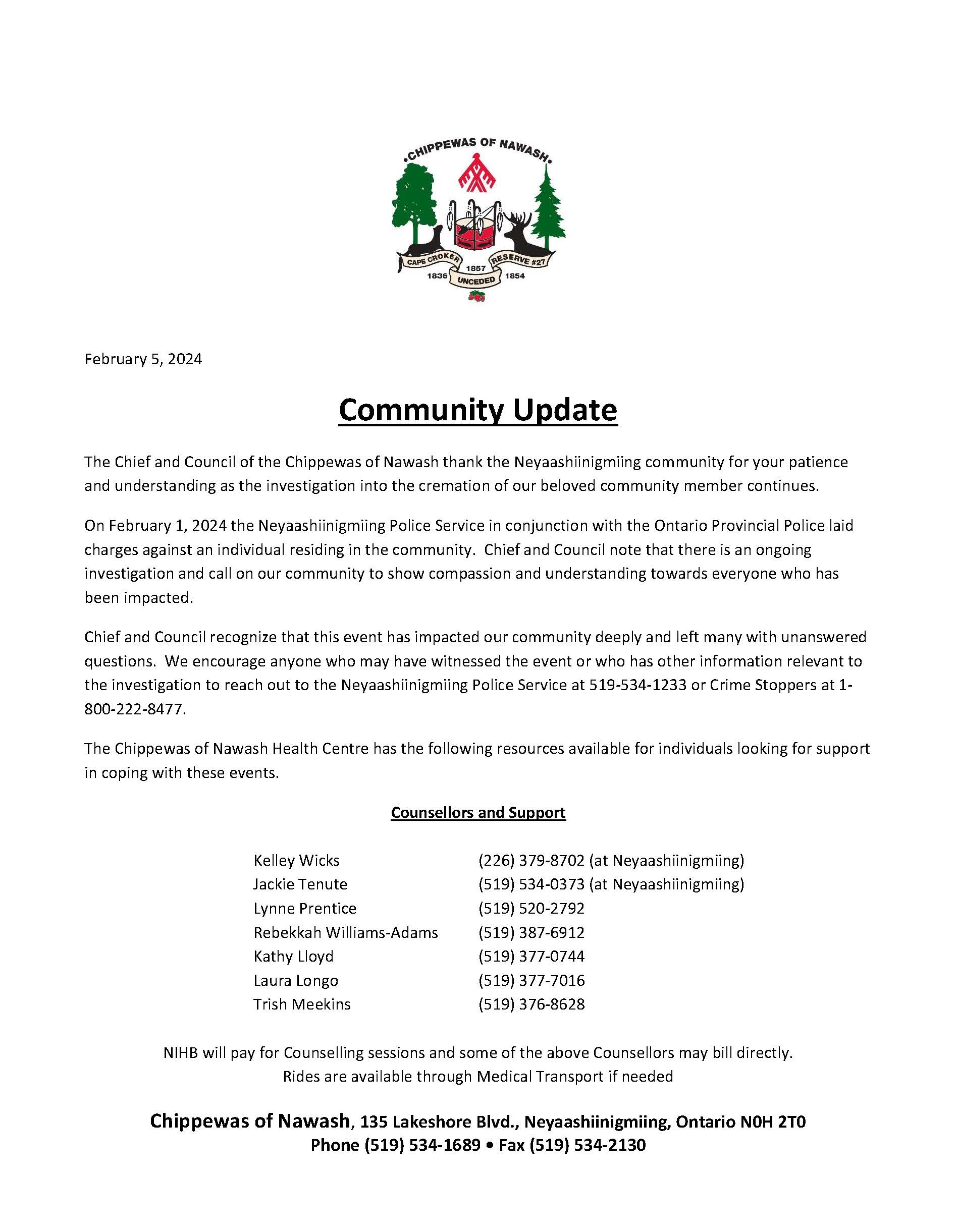 2024 Feb 05 Notice to Community – update