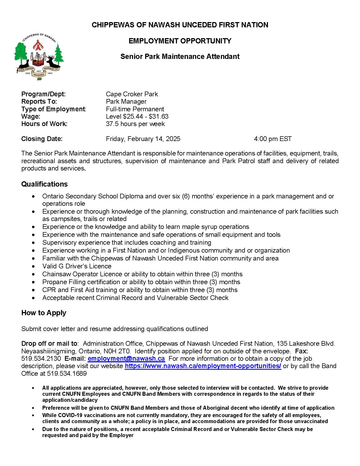 Senior Park Maintance Attendant JA 2025
