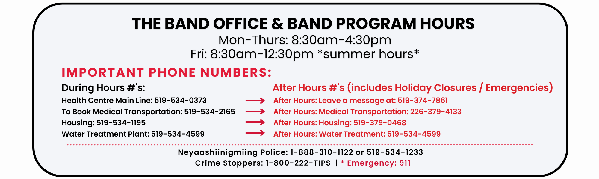 Band Office and Program Hours